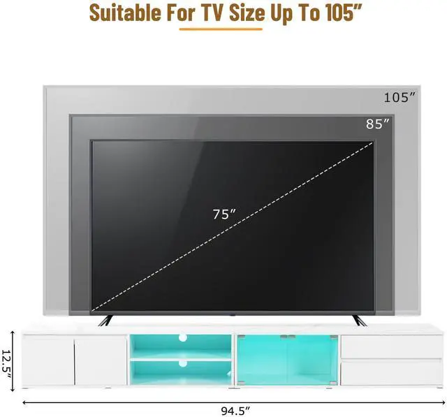The media console is designed with adjustable LED Light. Through wireless connectivity, you can easily change its color and brightness at any time using your mobile phone APP, and create a personalized viewing atmosphere according to your preferences and needs.