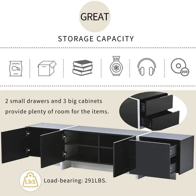 As a modern design TV cabinet for TVs Up to 80'', it can match a variety of interior designs, and it is also a good choice if you own a TV in the bedroom.