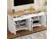 Two-Tone Rustic Style: This TV cabinet boasts a wood-grain top paired with a solid-colored body, giving it a charming rustic aesthetic. Furthermore, the curved design at the bottom adds a touch of sophistication to the entire piece. The black retro handles add highlights to your home in terms of both beauty and practicality.