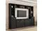 This set of entertainment wall units includes a right pier, left pier, overhead bridge, and TV console. It integrates the features of a TV stand, bookcase, wine rack, and display case in one piece.