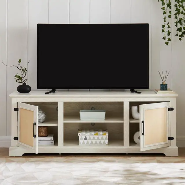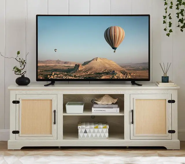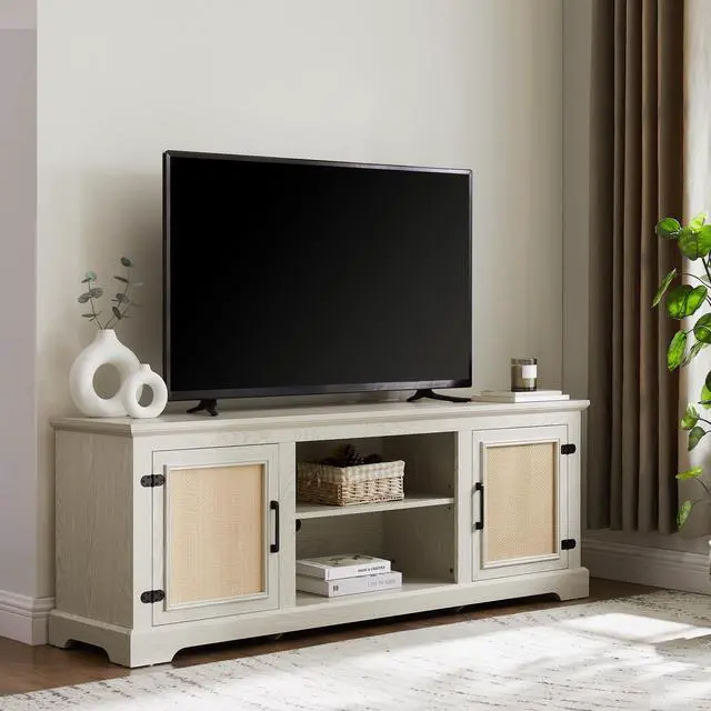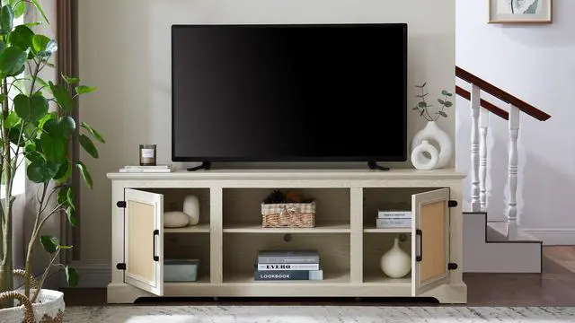 [Natural Rattan Decorating Surface] The tv stand's door surface is handcrafted from natural rattan, a two-tone blend of midcentury modern and boho that adds a cozy yet stylish touch to your space.