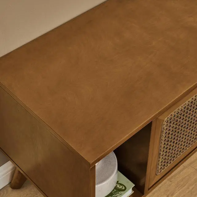[ High Quality & Durable Construction ] - Our TV cabinet is made of high quality P2 grade MDF and lead-free eco-friendly paint, and 4 solid wood legs provide strong support for this rattan TV cabinet. In addition, the plastic adjustable feet on the legs can adjust the angle to maintain balance and avoid scratching the floor.