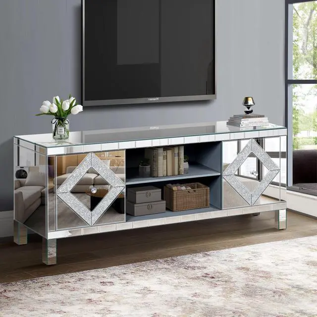High Quality: Mirror TV Stand is made of sturdy MDF and smooth glass mirror. The smooth surface of this TV stand makes it easier for you to clean.