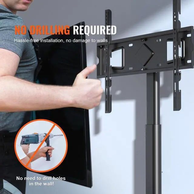 Quick and Easy Assembly: No more complicated installations! With clear instructions, you can assemble it in just 10 minutes without drilling holes in the wall. And thanks to its floor-standing design, you can effortlessly move the floor TV stand and clean the back of the TV.