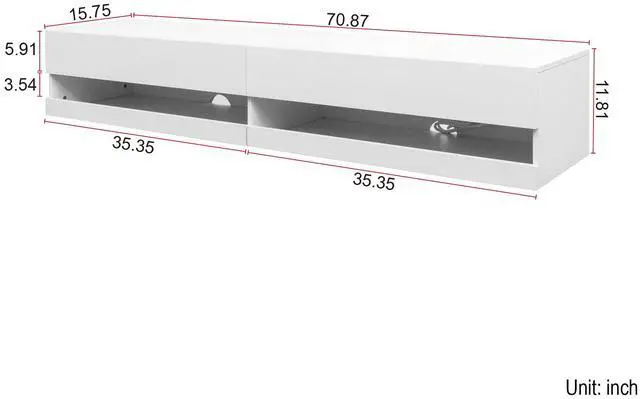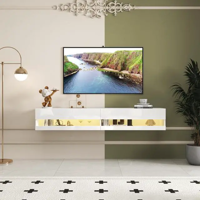 WHITE DESIGN]: The stylish white design combined with this floating TV shelf brings you a stylish atmosphere, which can easily complement any style of room or furniture. Coupled with a controllable With LED lights, 16 kinds of monochrome and 4 kinds of color change, it will add a touch of elegance and vitality to your bedroom, living room, media room, and office.