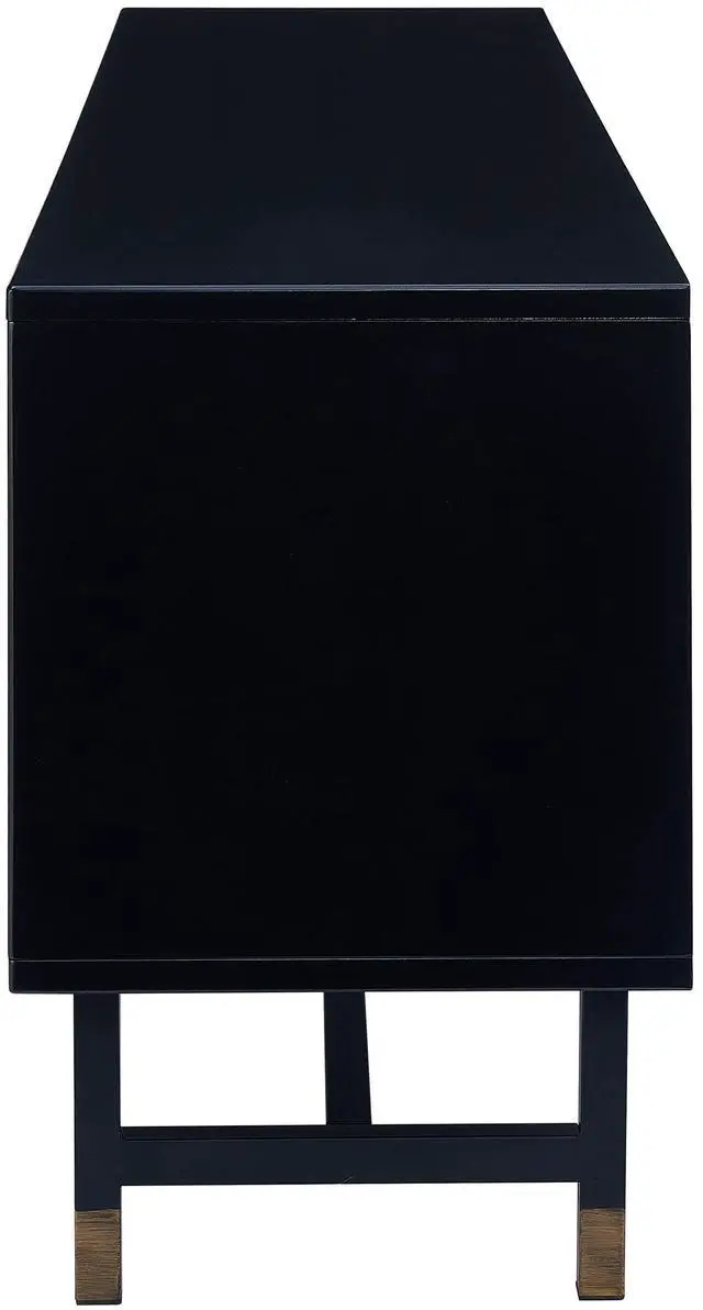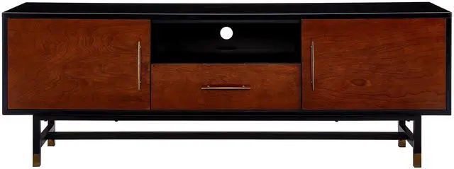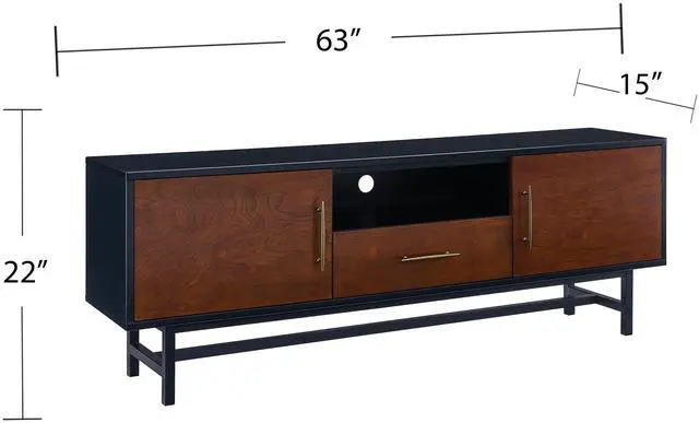 Black frame encases whiskey maple cabinet storage for everything from media equipment to entertaining accessories