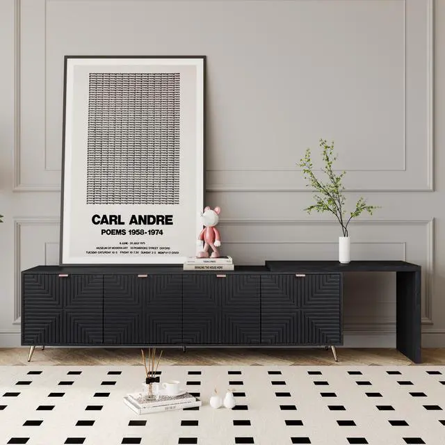 Extendable TV Stand: This TV cabinet is equipped with adjustable panels which can be extended from 70 " to 90", allowing it to accommodate TVs of different sizes, large enough to match TVs up to 90 inches.
