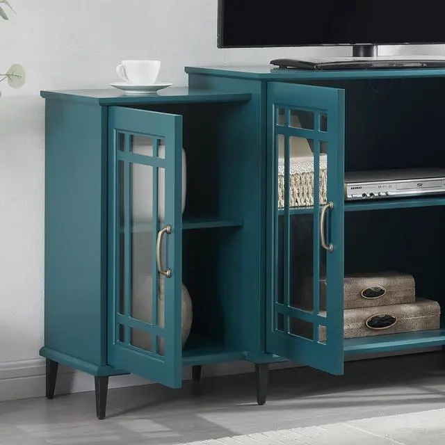 62" TV Stand, Buffet Sideboard Cabinet, Teal Blue