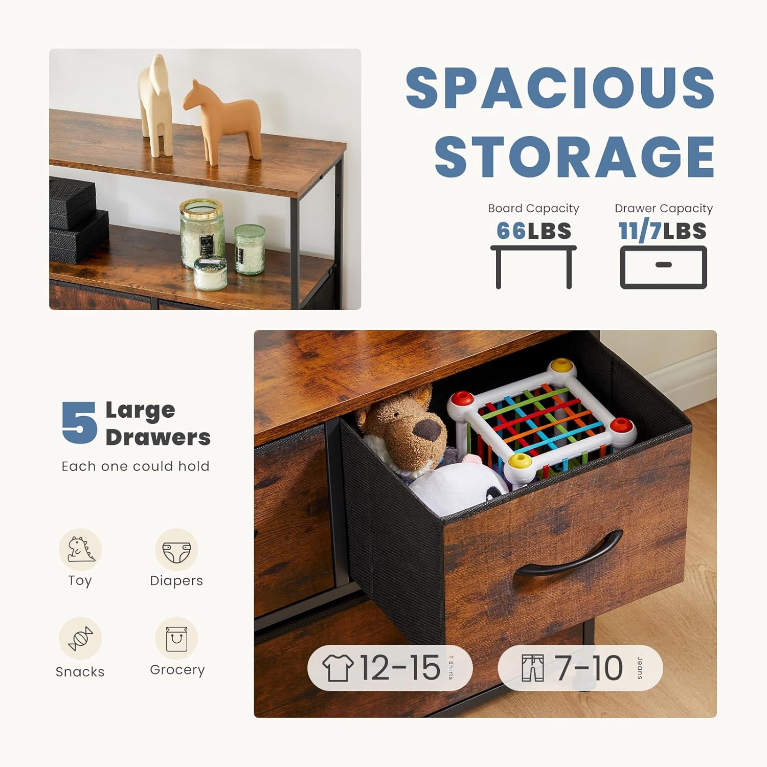 Eyesoul TV Stand Dresser with 5 Fabric Storage Drawers, Media Console Featuring Open Shelf for 45 inch TV, Compact Entertainment Unit for Bedroom, Living Space, or Dorm Organization, Rust