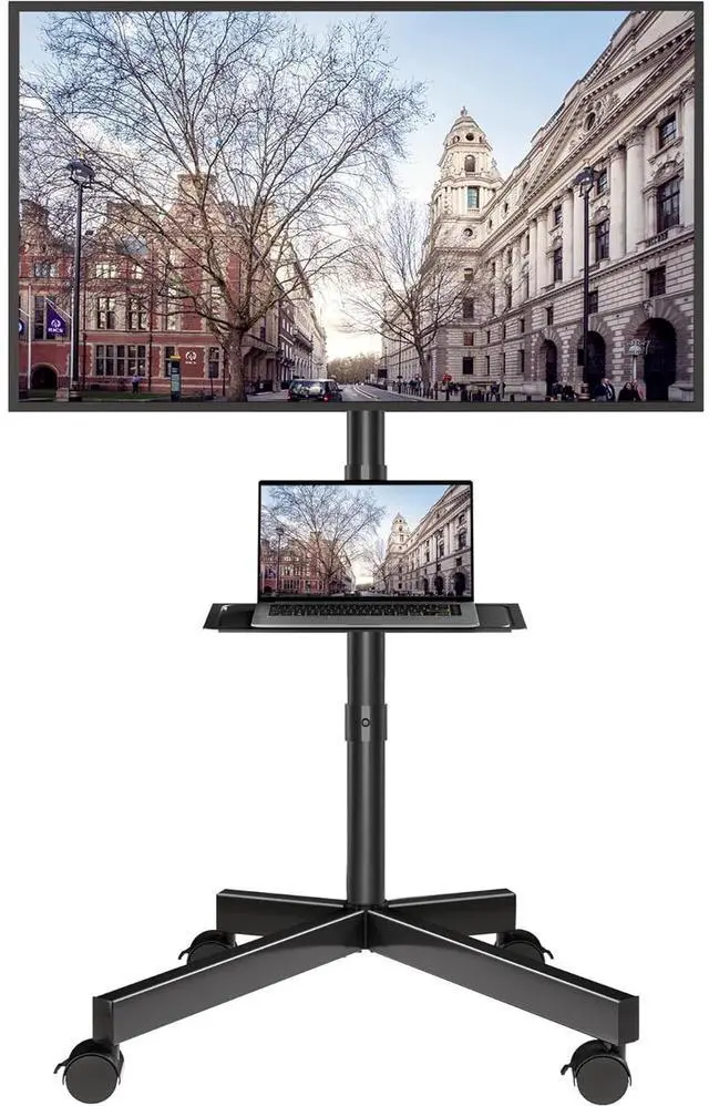 UNIVERSAL TV STAND COMPATIBILITY - This mobile TV stand is compatible with most 23-60 inch LED, LCD, and OLED flat or curved TVs, supporting VESA patterns up to 400x400mm and a maximum weight of 88lbs, ensuring versatility for various brands like Samsung, LG, Sony, and more