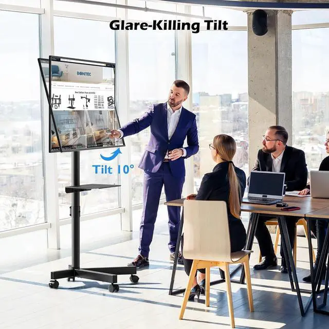 ENHANCED TV STAND VIEWING EXPERIENCE - Featuring a tilt function, this TV stand allows you to adjust the screen up to 10° for a glare-free, comfortable viewing angle, whether you're watching your favorite shows or delivering presentations