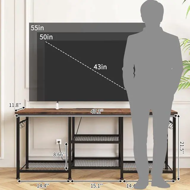 Product Size: TV stand is 47.2inch in length, 11.8inch in width and 21.6inch in height, suitable for 55 inch TV.