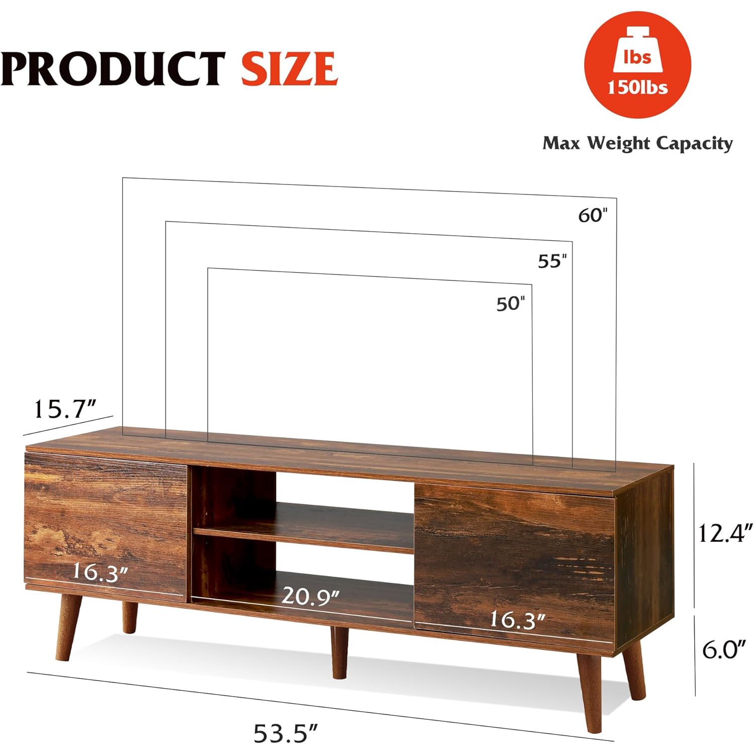 PROPER SIZE Overall dimension: 53.5"Lx15.7"Wx18.4"H. This TV entertainment center fits 50/55/60inch TVs.