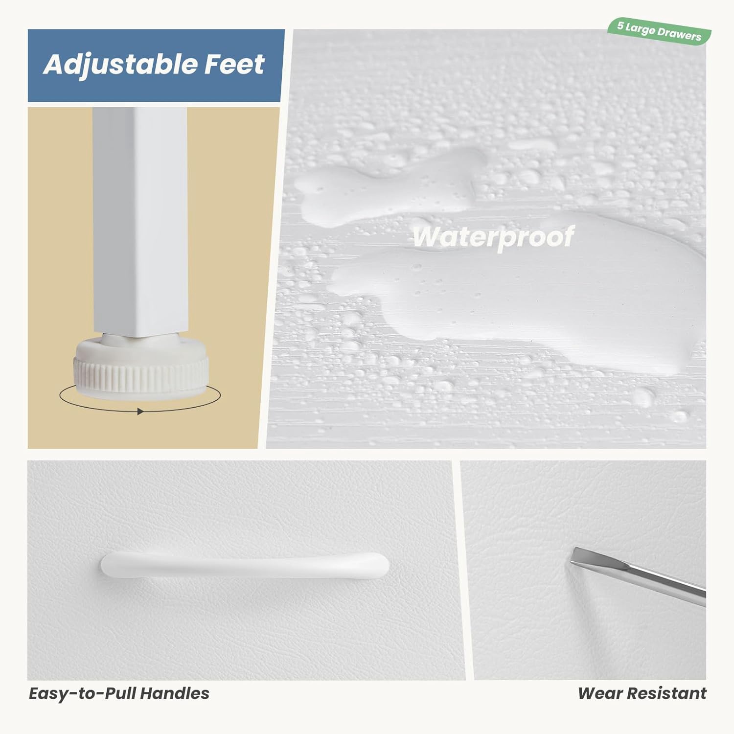 Adjustable Dresser FeetThe high-quality metal frame not only enhances the durability of this chest of drawers but also ensures its stability at all times. Additionally, the TV stand dresser is equipped with 4 height-adjustable feet that effectively protect your floor from scratches caused by direct contact with the metal frame.