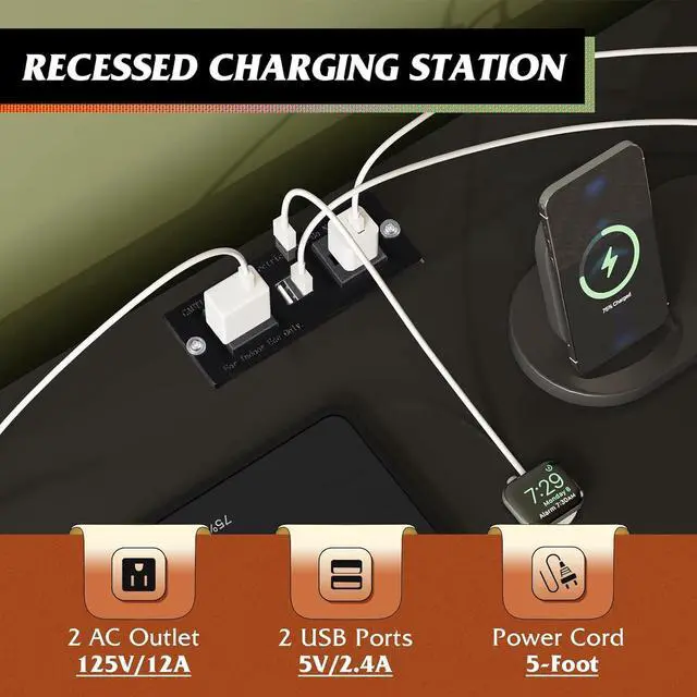 With Power OutletSay goodbye to messy wires! TV stands is equipped with 2 AC sockets +2 USB ports, 1.5m flexible cable length, TV, game console, router a power board can be done, instant increase desktop cleanliness by 50%, through UL/ETL certification, electricity safety!