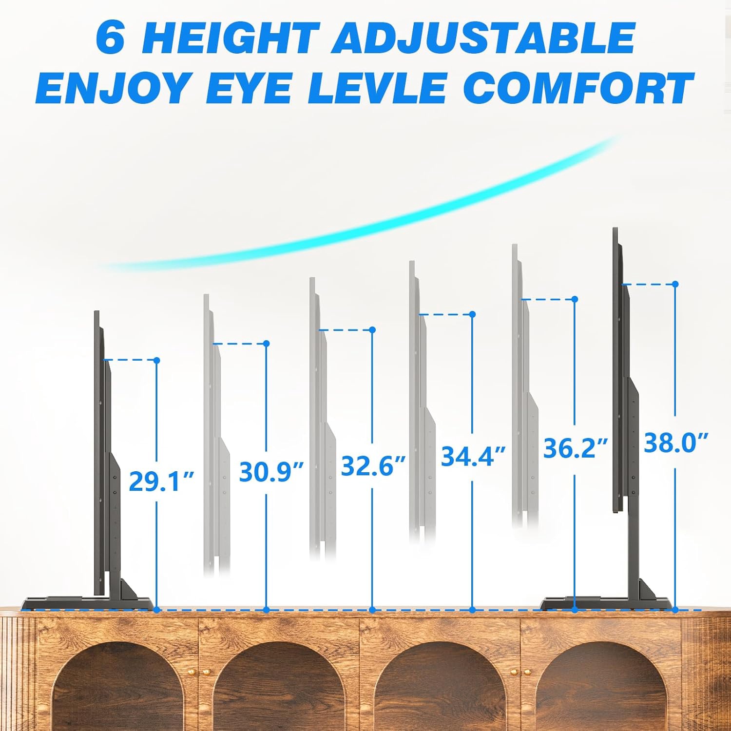 Eyesoul Table Top TV Stand with Height Adjustable TV Legs, TV Stands Base with Cable Management for Most 37 to 86 Inch Flat or Curved TVs, Steel TV Feet Holds up to 150 lbs, Max VESA 800x600mm, Black