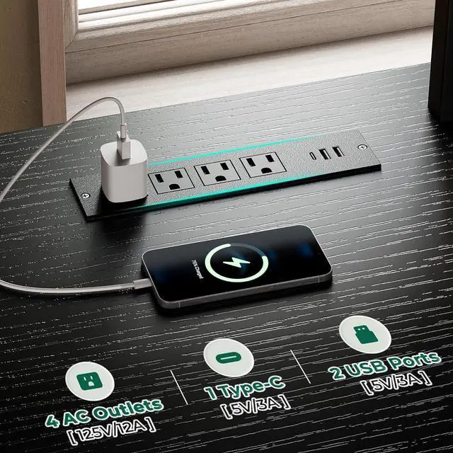 Power OutletsStay connected with 4 standard plug outlets, 2 USB ports, and 1 Type-C port on this TV entertainment center. These multiple charging options help that all your devices, from TV Box, medias, gaming consoles to speakers, are always ready to use without the hassle of unplugging and switching cables