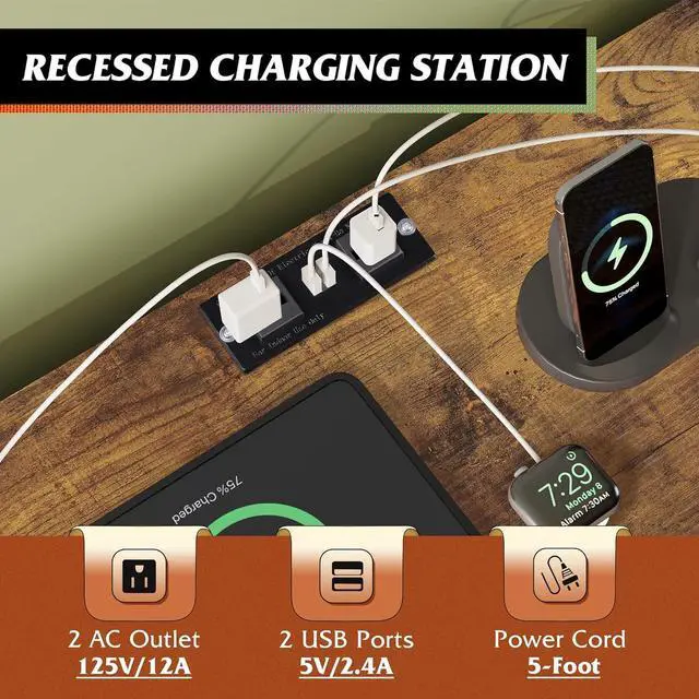 With Power OutletSay goodbye to messy wires! TV stands is equipped with 2 AC sockets +2 USB ports, 1.5m flexible cable length, TV, game console, router a power board can be done, instant increase desktop cleanliness by 50%, through UL/ETL certification, electricity safety!