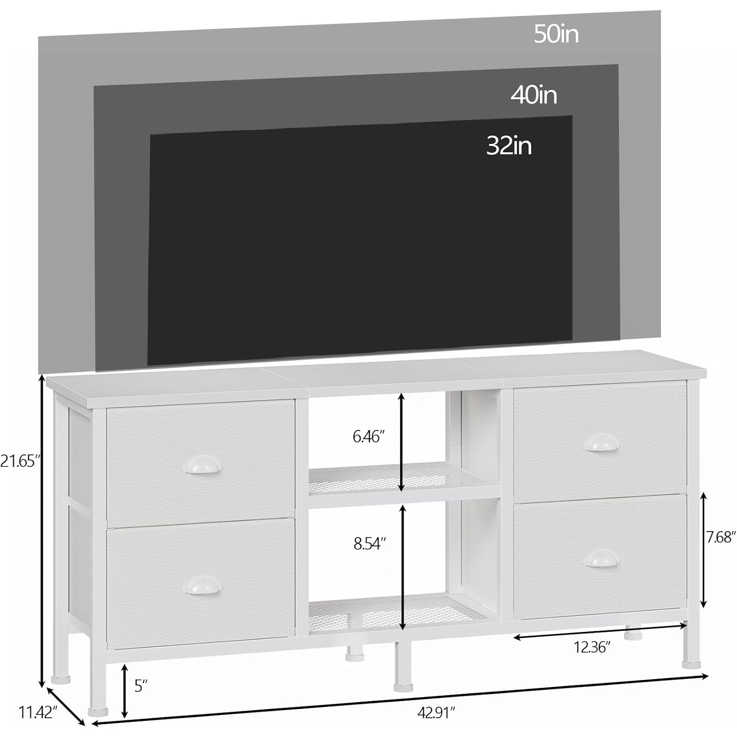 Eyesoul TV Stand Dresser with 4 Drawers, Entertainment Center with Open Shelf, Small Television Stands for 50" TV, Media Center for Bedroom, Living Room/White