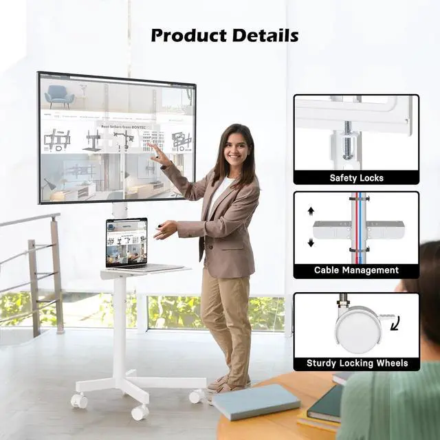 UNIVERSAL TV STAND COMPATIBILITY - This mobile TV stand is compatible with most 23-60 inch LED, LCD, and OLED flat or curved TVs, supporting VESA patterns up to 400x400mm and a maximum weight of 88lbs, ensuring versatility for various brands like Samsung, LG, Sony, and more