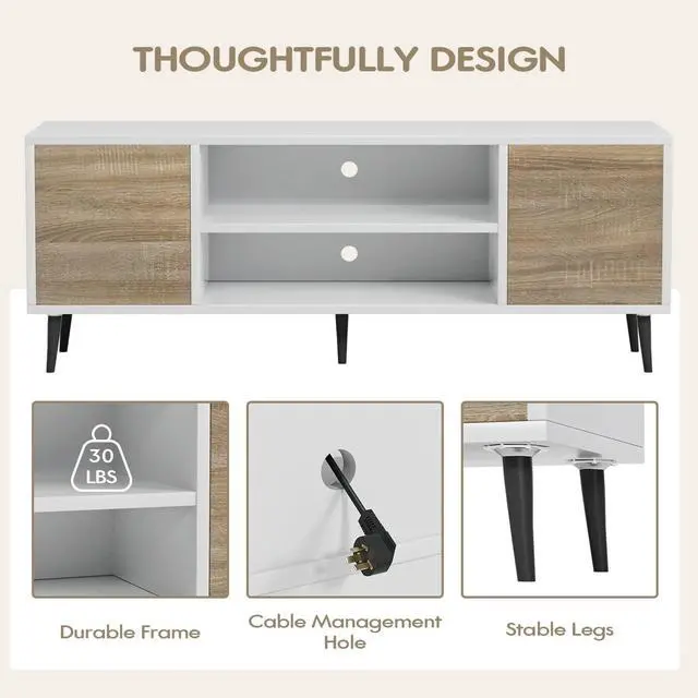Eyesoul Modern TV Stand for 65" Television, Entertainment Center with Two Storage Cabinets, Retro Style Media Console for Living Room, Bedroom, Office, 58 Inch, White and Coffee