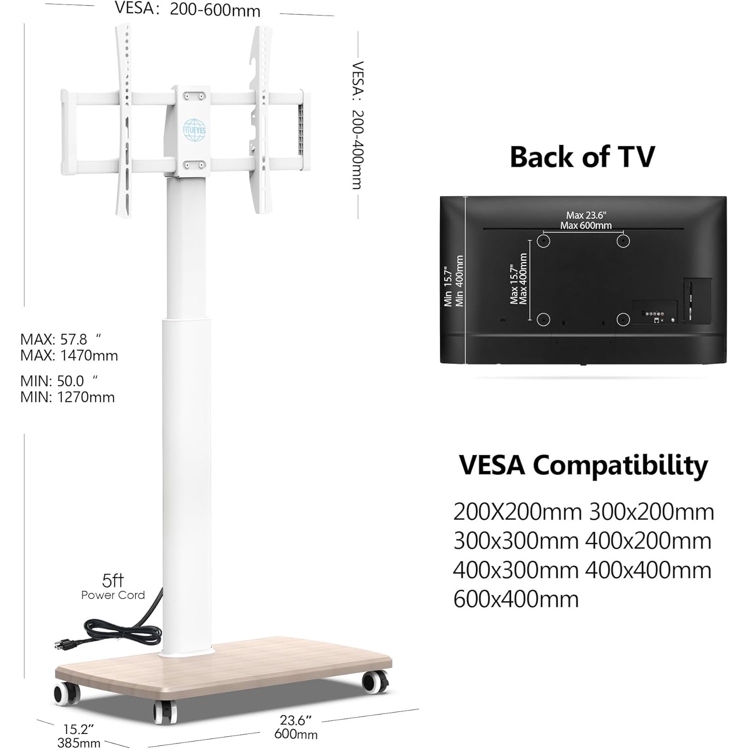 ROLLING TV STAND WITH POWER OUTLETS(ETL Certified) - We gathered a lot of market data and customer experience to launch this rolling TV stand with Power Outlets. Mobile TV cart features a built-in power outlet with 3 AC outlets (125V/12A), and a 5 ft power cord(Thicker Wire). Cable management on the back of the mobile TV stand keeps your wires in place, stay away from entangled troubles