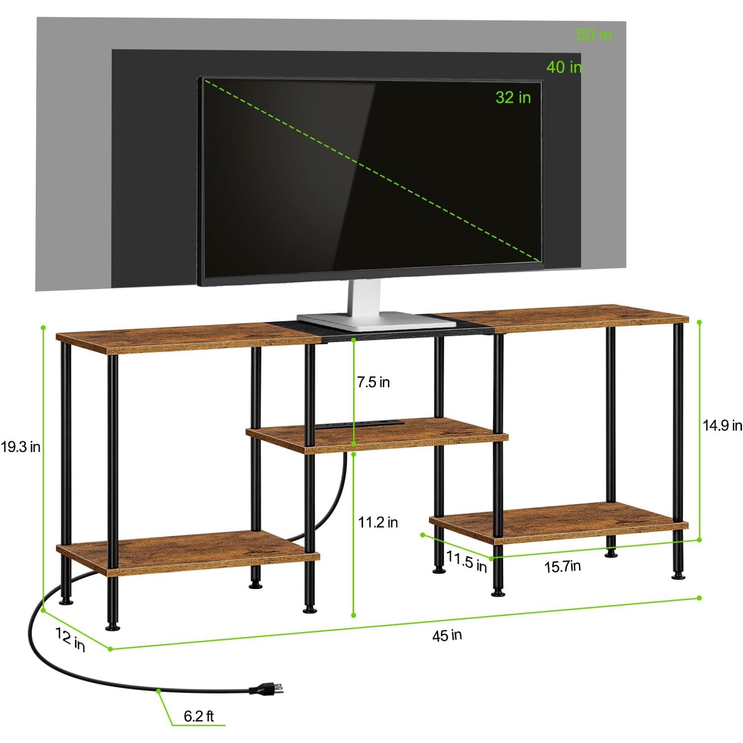 Suitable for 50 Inch TVThis TV console table measures 45'' L x 11.8'' W x 19'' H and can accommodate TVs up to 50 inches. The compact structure does not take up much space and is perfect for your living room, bedroom and other small spaces.