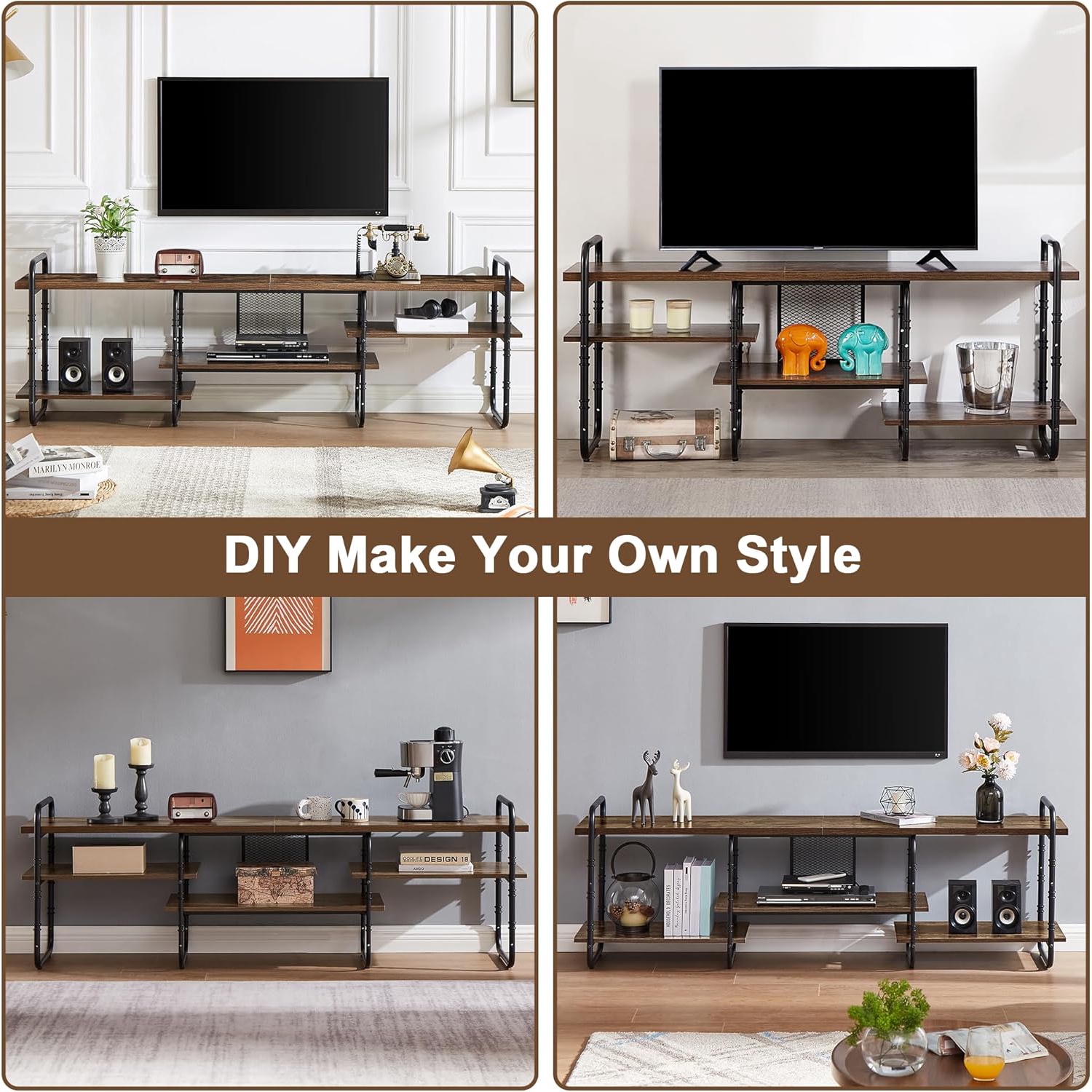 Ample Storage SpaceThis TV stand features three spacious shelves, perfect for organizing your game consoles, DVDs, books, and decorative items. With four adjustable assembly options, you can customize the layout to suit your style.