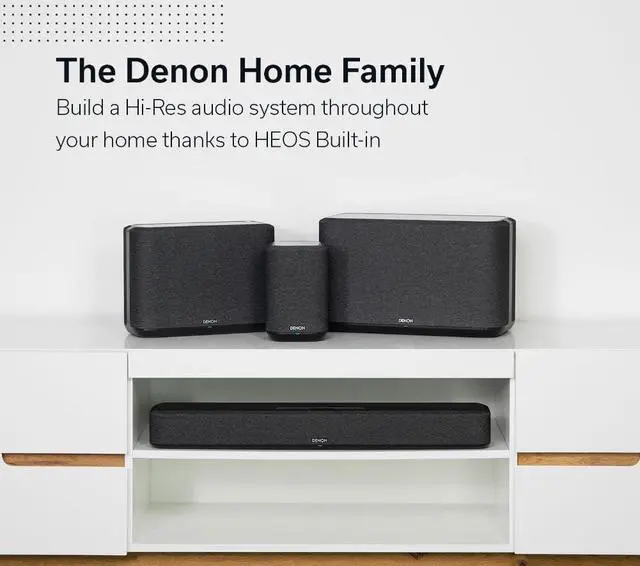 BUILD A WIRELESS SOUND BAR SETUP - Pair Denon Home 150, 250, or 350 speakers to create a seamless Denon Home ecosystem or connect any HEOS speaker for a multi-room HEOS synchronized audio system; for additional bass, add the Denon Home Subwoofer
