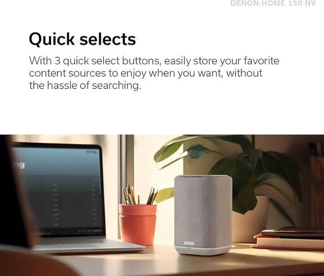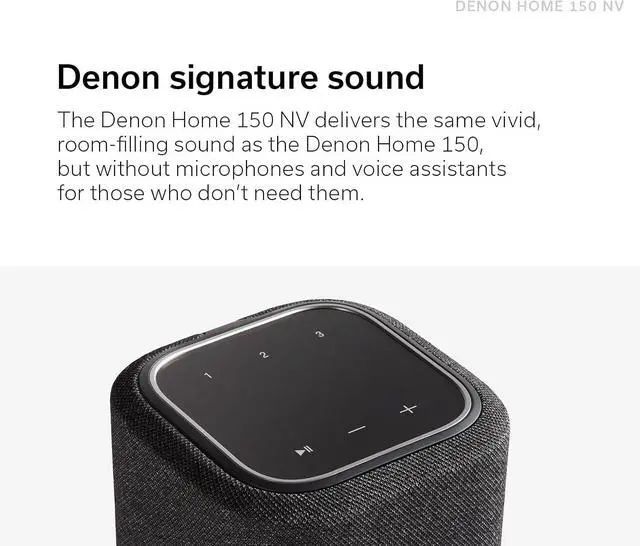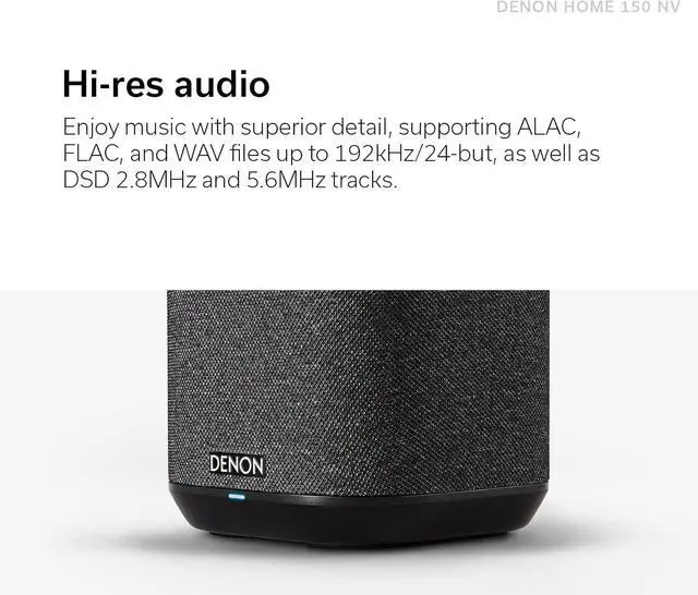 POWERFUL AUDIO IN COMPACT SIZE Featuring advanced acoustic hardware, tuned DSP, and full-range drivers, the Denon Home 150 NV Bluetooth Wireless Speaker delivers immersive, room-filling audio with minimal distortion - all from a compact design