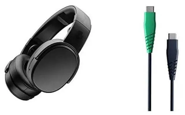 Skullcandy Crusher Wireless Over-Ear Headphones - Black with Line Round Charging Cable, USB-C to USB-C - Dark Blue/Green, 4ft