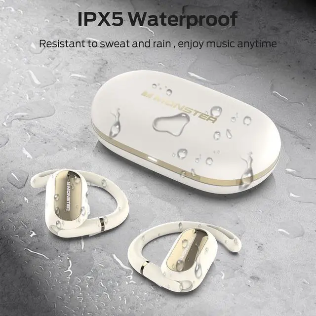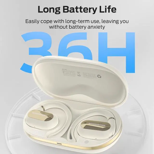 Monster Open Ear AC322, Bluetooth 5.4 Headset, 36H Battery Life, IPX5 Waterproof, Clear Communication, Ergonomic Design, Ear Angle Adjustable, Not Easy to Fall Off Wireless Bluetooth Headset.White