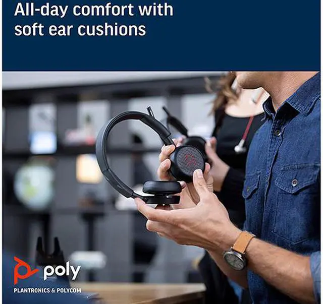 Need options in your open office environment? Choose from two over-the-head styles. Mono lets you hear your surroundings, while stereo lets you zone-in to your playlist or experience calls like you're face-to-face. With soft headband and pillow-y ear cushions, you'll want to wear it all day.