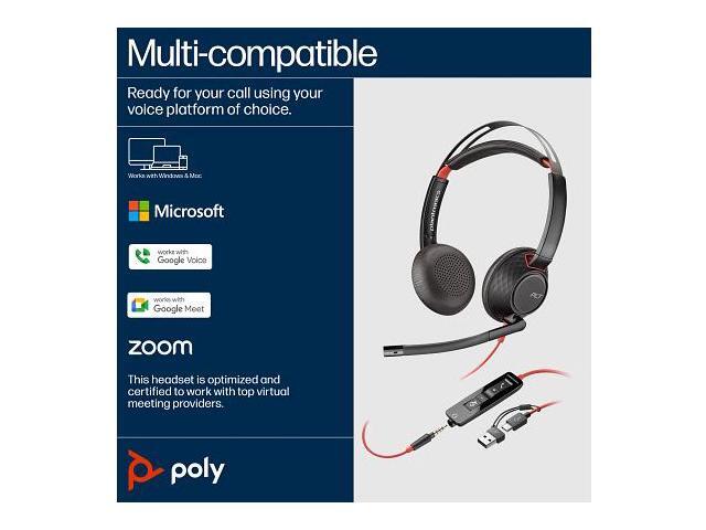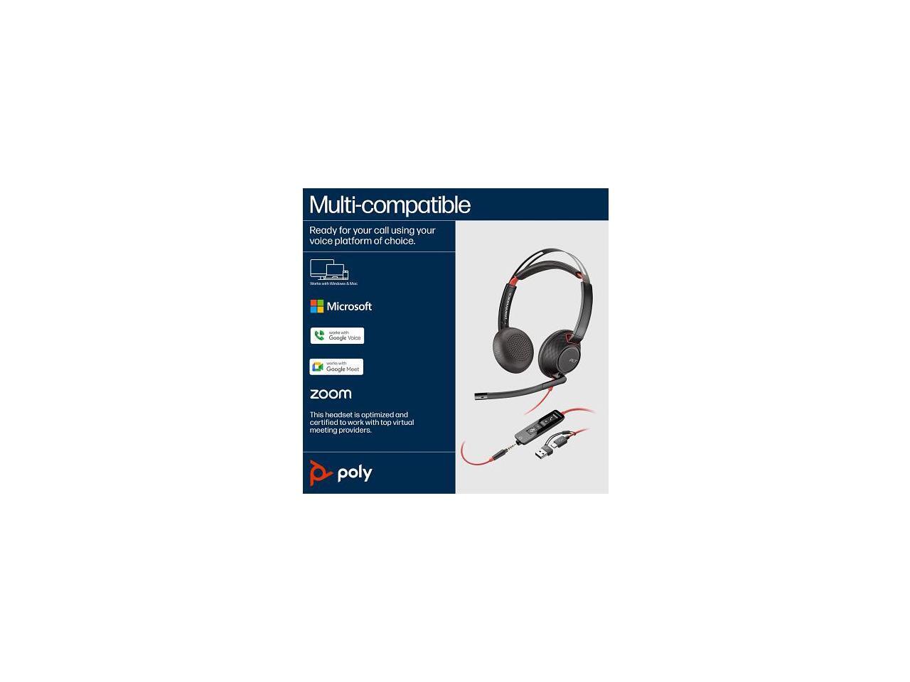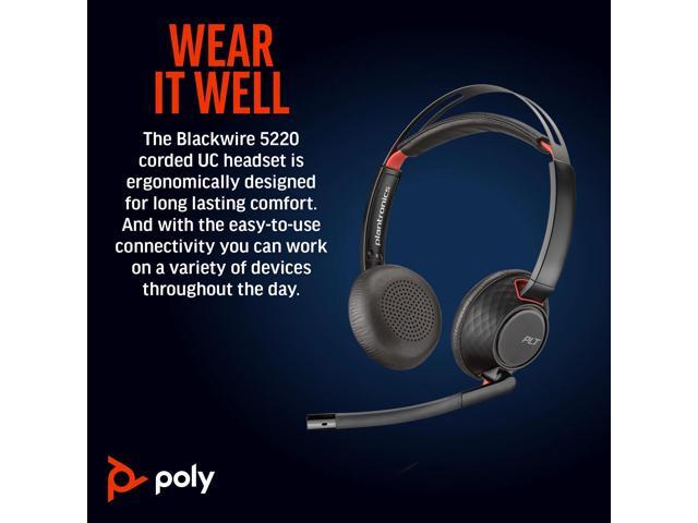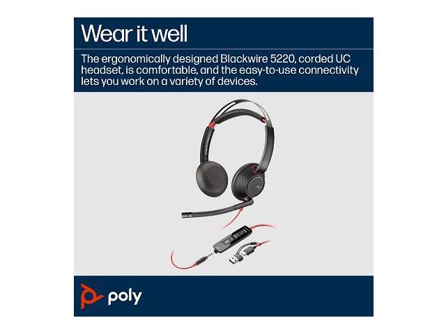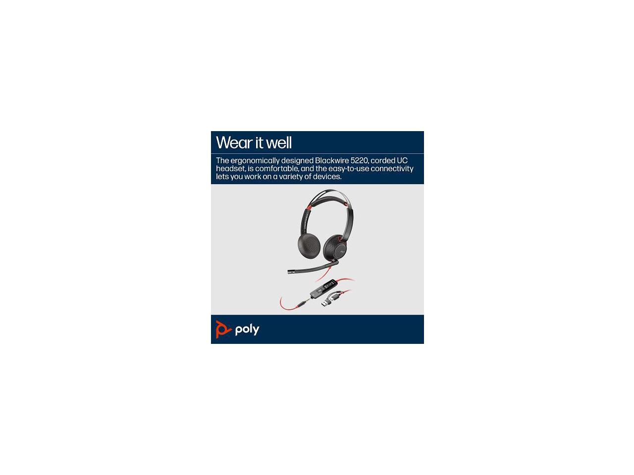 Plantronics Poly Blackwire 5220 Stereo USB-C Headset +3.5mm Plug +USB-C/A Adapter