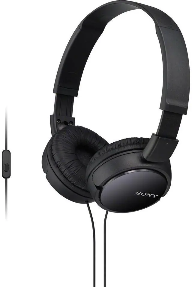 The black version of the Sony MDR-ZX110AP Extra Bass Smartphone Headset utilizes 30mm dynamic dome drivers to deliver an extended low frequency response of 12 to 22,000 Hz with a sensitivity of 98 dB/mW.