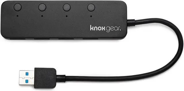 Knox Gear 4-Port USB 3.0 HubThe Knox Gear 4-Port USB 3.0 Hub instantly adds four USB 3.0 ports to any compatible device. The 3.0 hub supports data transfers up to 5 gps. LED indicators display the power status for each port, and each port was designed with its own turn on/off switch. The USB hub features a compact and slim design encased in aluminum housing.
