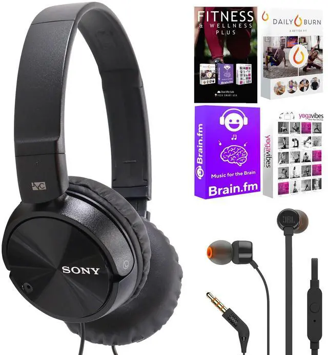 SONY MDR-ZX110NC NOISE-CANCELING ON-EAR HEADPHONES + JBL T110 IN EAR HEADPHONES + 92783 FITNESS AND WELLNESS PLUS SOFTWARE SUITE