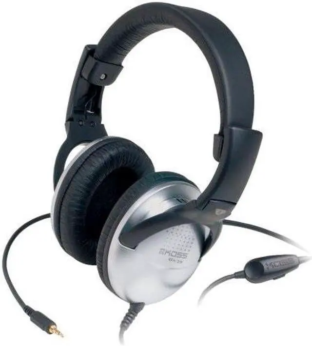 KOSS 178295 UR29 Full-Size Headphones Delivers bass-enhanced high-quality sound ; Features dynamic elements, constructed from 1.4mm Mylar(R) to enhance rigidity, minimize mechanical distortion & yield a full-frequency response; Closed leatherette ear cushions; Ear cups rotate & fold in to collapse into a protective package; Volume control on cord; Padded adjustable headband; Freq resp: 18Hz-20kHz; Imp: 100ohm ; Sensitivity: 101dB/mW; 8ft straight, single-entry cord; Includes gold-flashed 3.5mm plug & gold-flashed 1/4"" adapter; Limited lifetime warranty;