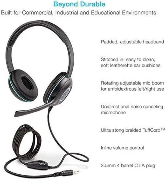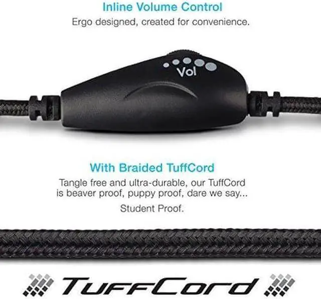 DURABLE DESIGN: These headsets are hardwearing and long lasting which is vital when being frequently used in school and businesses. The cord is made from a Braided TuffCord which is tangle free ultra-durable and student proof!
