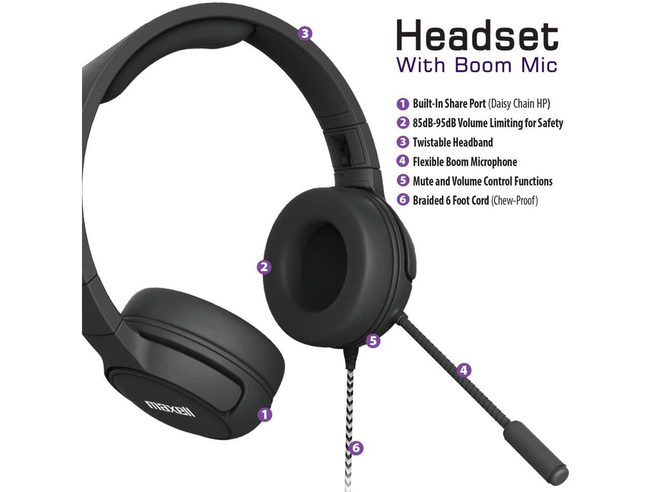 Maxell Kids Safe Listening Over-ear Headset with Boom Mic (198021) - Black