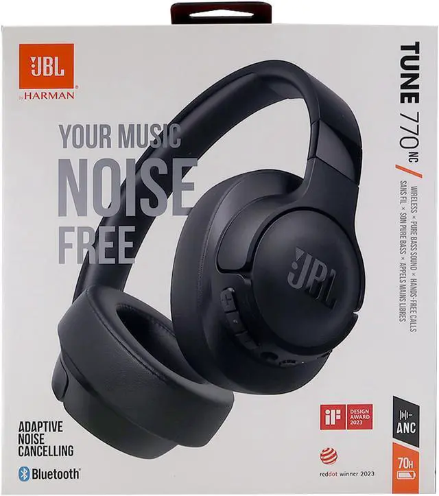 JBL TUNE 770NC NOISE-CANCELLING OVER-EAR HEADPHONES (BLACK) + JBL T110 IN EAR HEADPHONES BLACK JBL Tune 770NC Noise-Cancelling Over-Ear Headphones (Black) Lose yourself in your audio anywhere with the Tune 770NC from JBL, a pair of over-ear headphones with adaptive noise cancelling.KEY_TAB