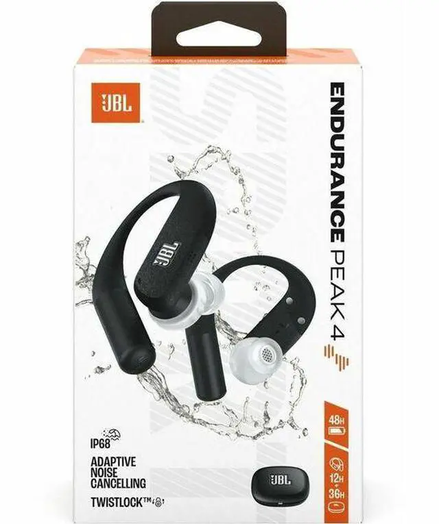 Never Hurt, Never Fall Out. Exercise harder, longer. The flexibility, powerful sound, and rugged design of your JBL Endurance Peak 4 will match you beat for beat. JBL Pure Bass Sound with Spatial Sound fuel your workout from the bottom up, and no matter how intense your moves get, the ergonomic fit of the TwistLock™ design means they'll always stay in and stay comfortable. Most of all, a waterproof and dustproof IP68 rating means the weather will never give you an excuse to stay home. Block out distractions with Adaptive Noise Cancelling or stay in touch with your surroundings with Ambient Aware.
