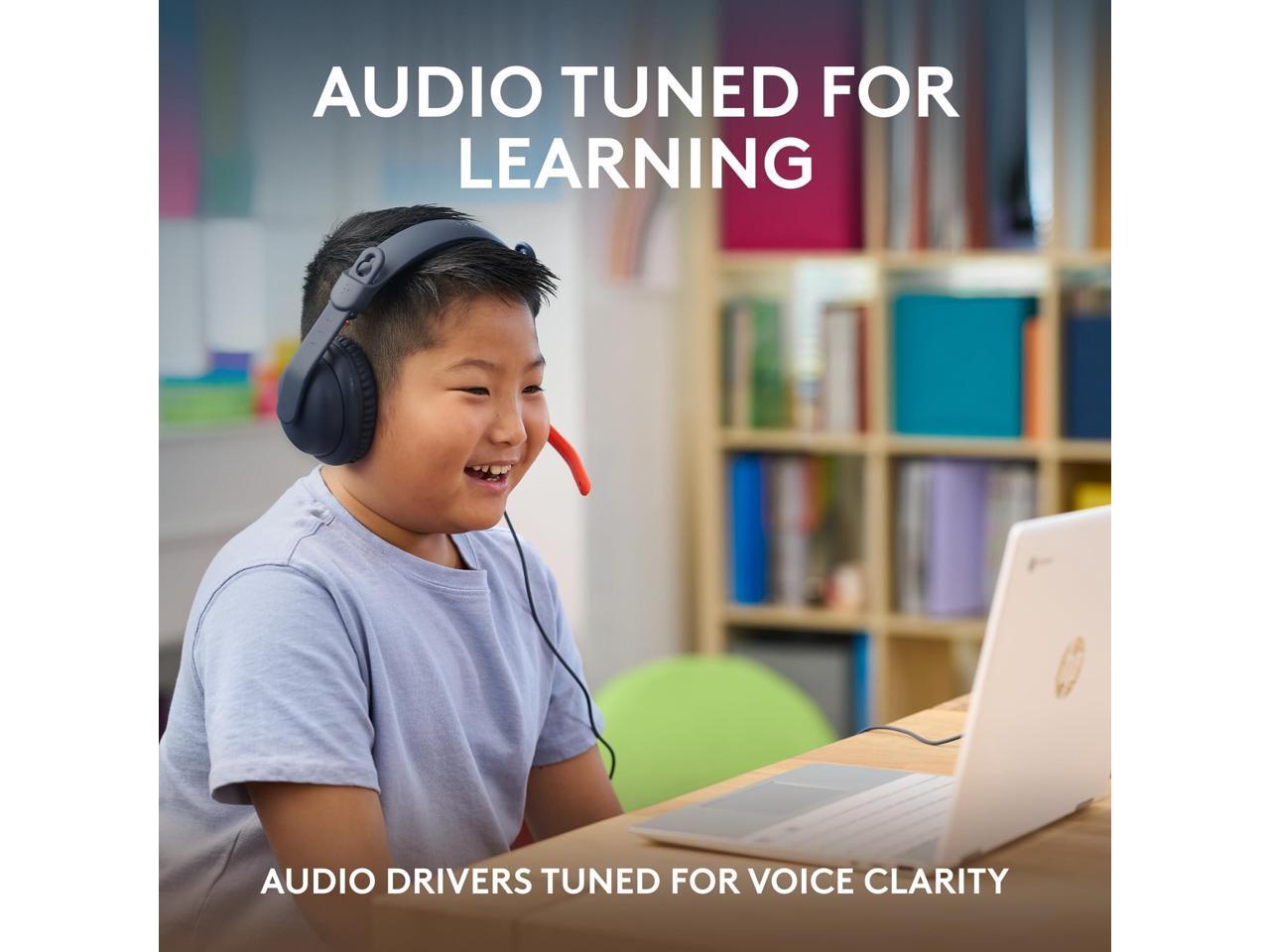 Logitech Zone Learn Headset - Stereo - Mini-phone (3.5mm) - Wired - On-ear - Binaural - Circumaural - 4.30 ft Cable - Noise Canceling - Classic Blue