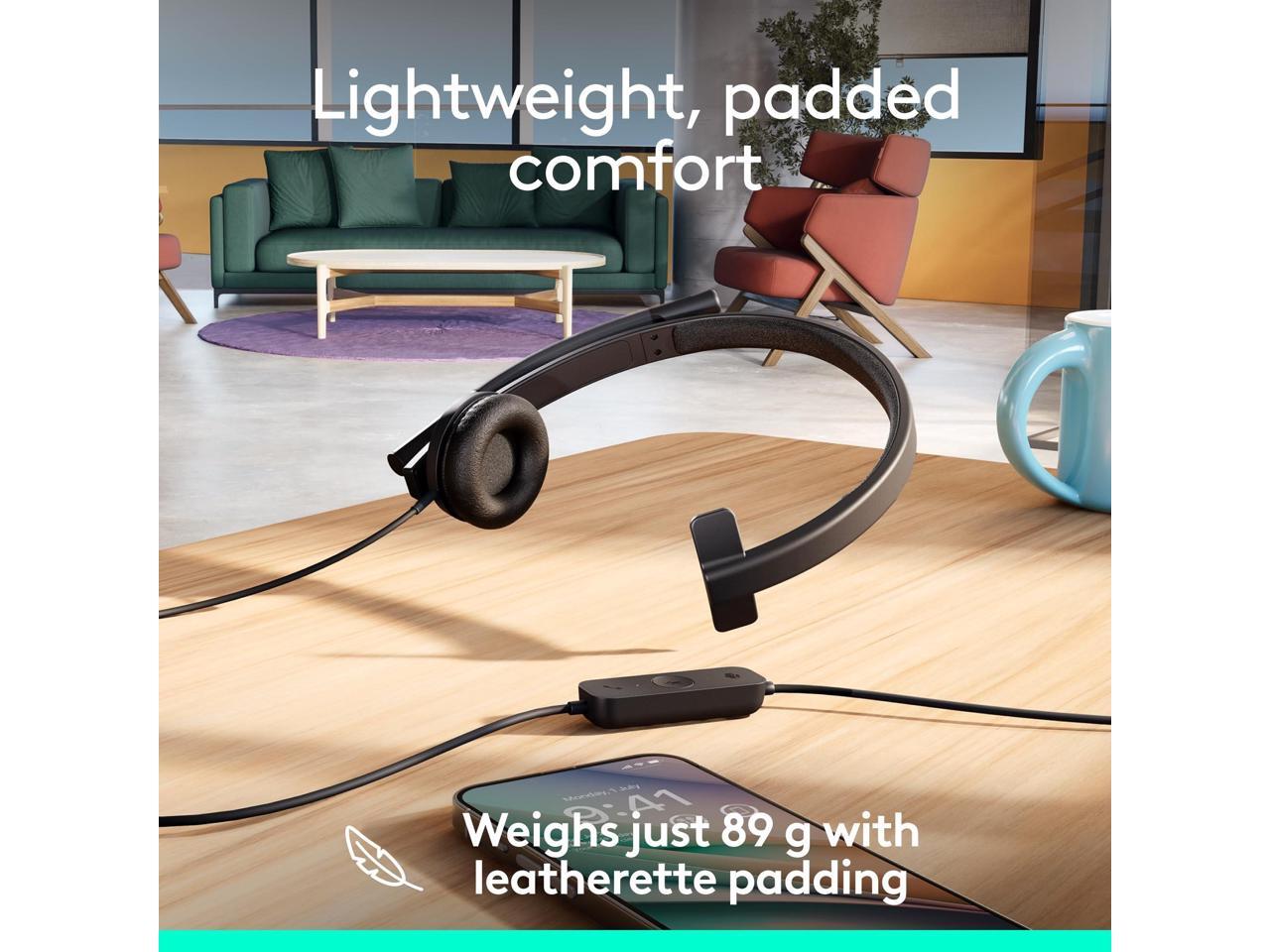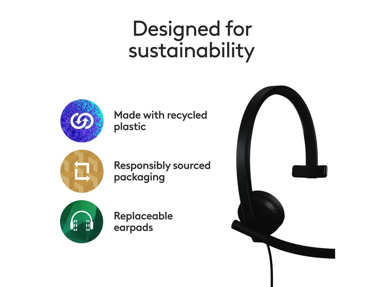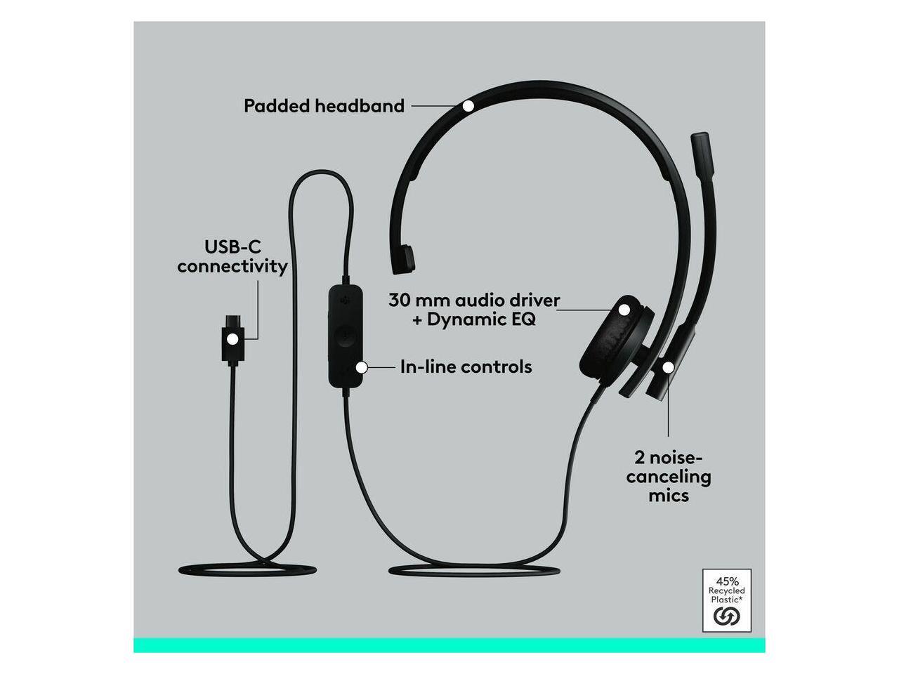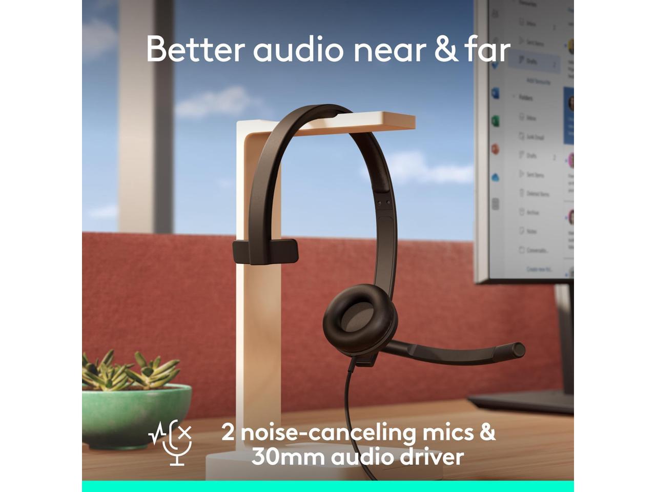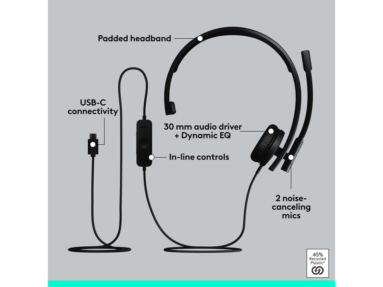 Logitech H570e USB Headset With Microphone for PC and Mac, USB-C Wired Headset With Mono Sound, Noise-Canceling Mics and Inline Controls, Certified for Microsoft Teams, Black - Microsoft Teams Certifi