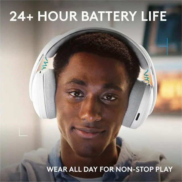 Dive into the game with the Logitech G325 wireless gaming headset featuring 24-bit audio and an integrated, beamforming mic with AI-powered noise reduction that ensures crystal-clear communication. Experience seamless gameplay with reliable LIGHTSPEED wireless technology. Engineered for long play sessions, the G325 boasts 24+ hours of battery life, plush dual-layer foam ear cups, and extendable arms for premium comfort. With its sleek design, the G325 transitions effortlessly from your battlestation to on-the-go, offering versatile use and unparalleled style. Elevate your game with performance and comfort that redefine your gaming experience.