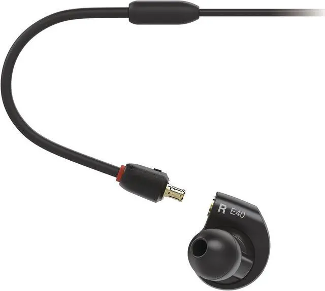 The ATH-E40 features specially designed housings that provide incredible isolation. The isolation is enhanced by the four sizes of included silicone eartips (XS/S/M/L), which allow you to create a custom fit. The headphones also come with a detachable 1.6 m ( 5.2 ') cable, with newly developed A2DC (Audio Designed Detachable Coaxial) connectors at the headphones and a 3.5 mm (1/8") stereo mini-plug output, and a carrying case.