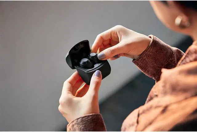 - Buttons in the earbuds provide easy control of music playback, volume, calls, and hear-through and noise-cancelling functions