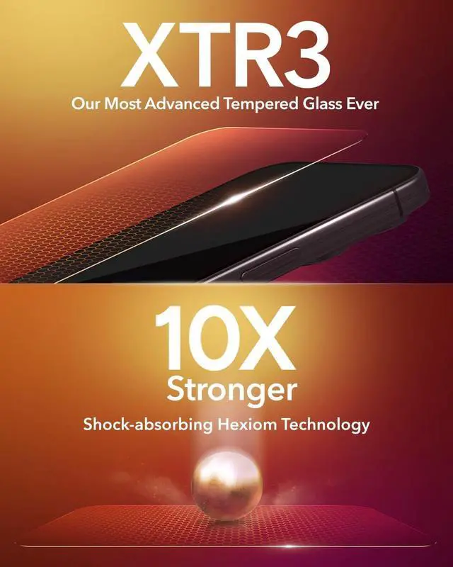 10X STRONGER: Glass XTR3, made with Hexiom impact technology, is up to 10 times stronger than traditional glass screen protectors for ultimate durability