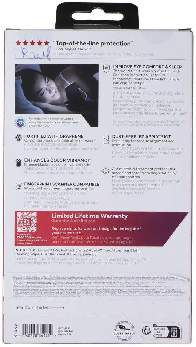 GRAPHENE-FORTIFIED TECHNOLOGY: Made with graphene, one of the strongest materials on Earth, Fusion XTR4 delivers superior impact and scratch resistance without compromising clarity or touch sensitivity