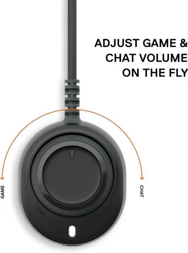 The inline USB chat mix dial balances game audio and chat volume on the fly